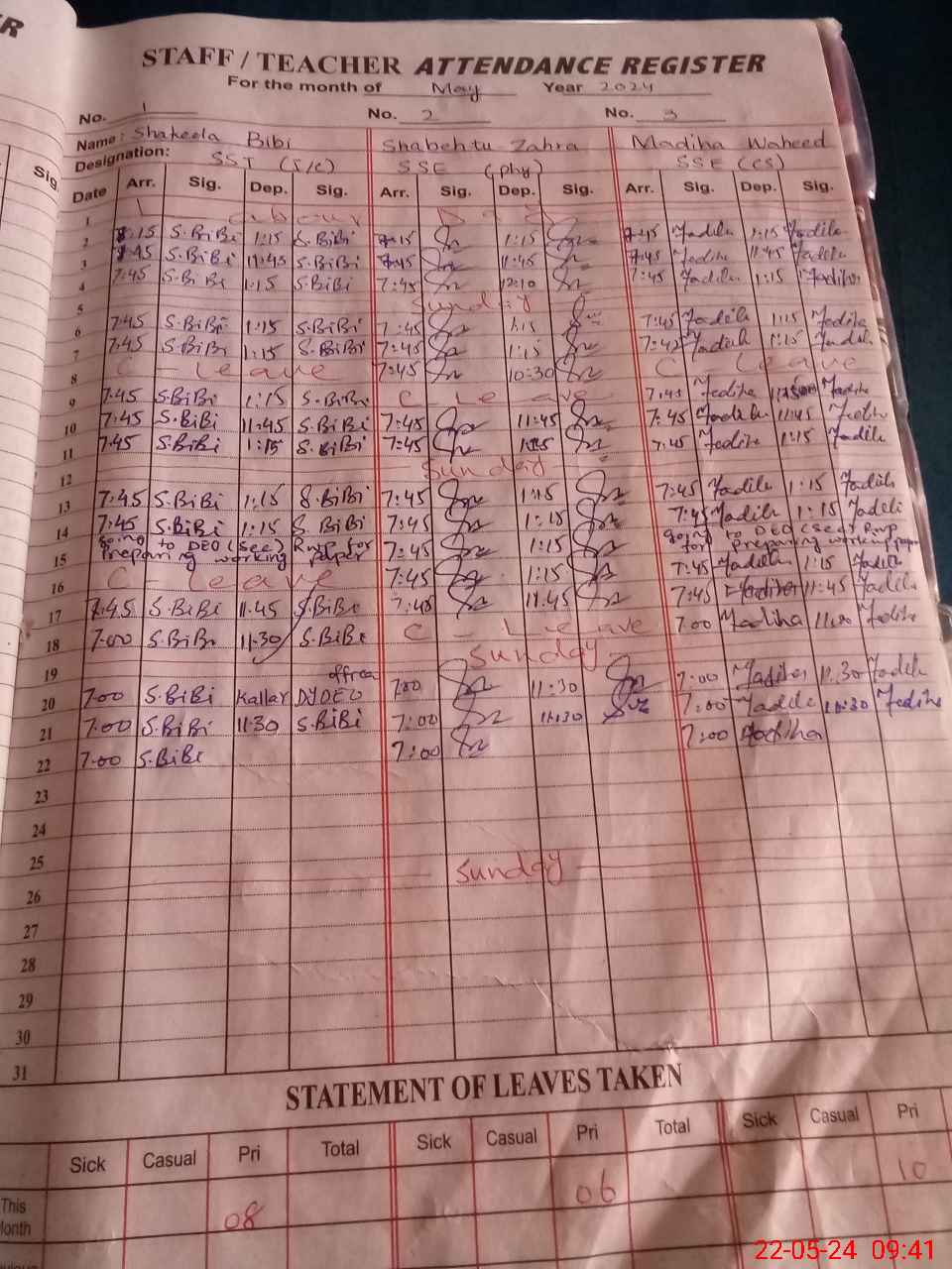 | 36**** | As**** Za**** | PST | Regular | 0 | 0 | 30 | 0 | 0 | 0 | 0 | 0 | 0 | Absent (Un-Authorized) |