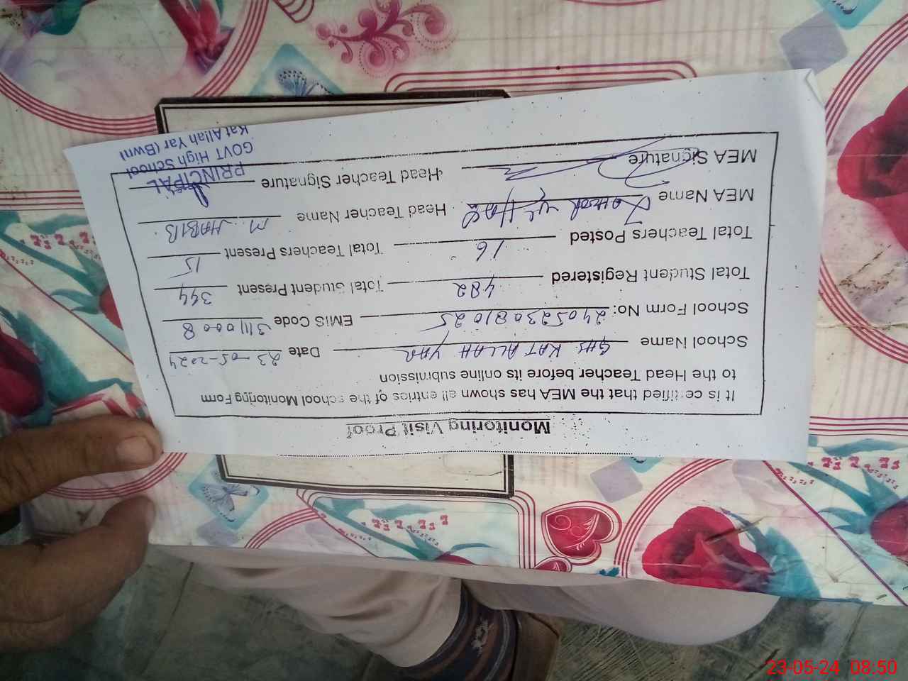 | Name: MU**** HA**** Designation: (School Headmaster's/Headmistress's) SST SCI Phone/Cell Number: 03**** |