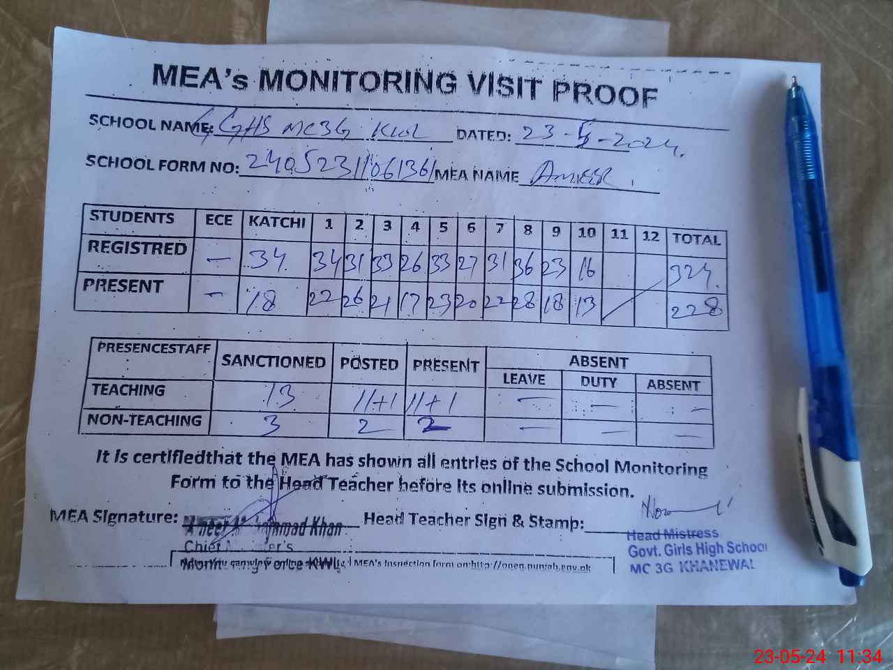 | EMIS Code: 36420365 | Name of School: GGHS MC 3-G, KHANEWAL | |||
