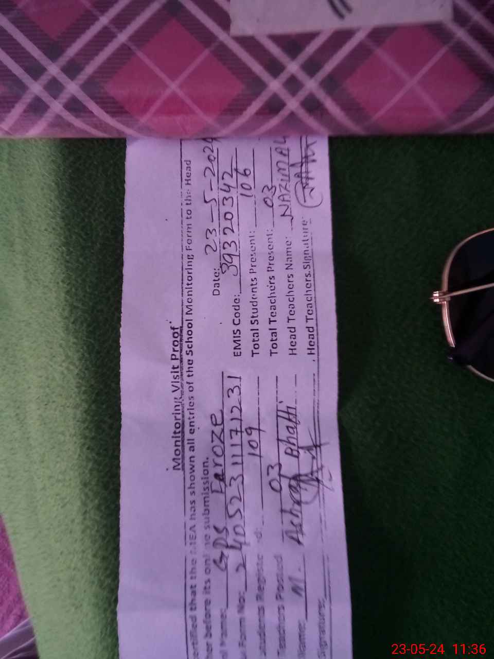 | EMIS Code: 39320342 | Name of School: GPS FEROZE | |||