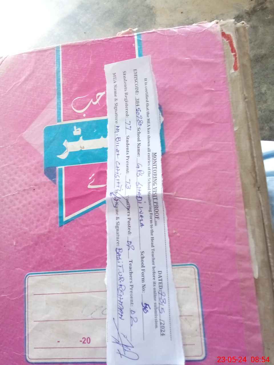 | Attendance Register | Head Teacher | MEA with School | Visit Proof |