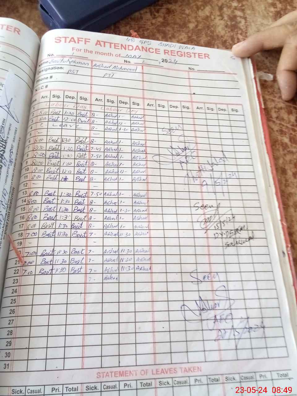 | Name: BA**** URRE**** Designation: (School Headmaster's/Headmistress's) PST Phone/Cell Number: 03**** |
