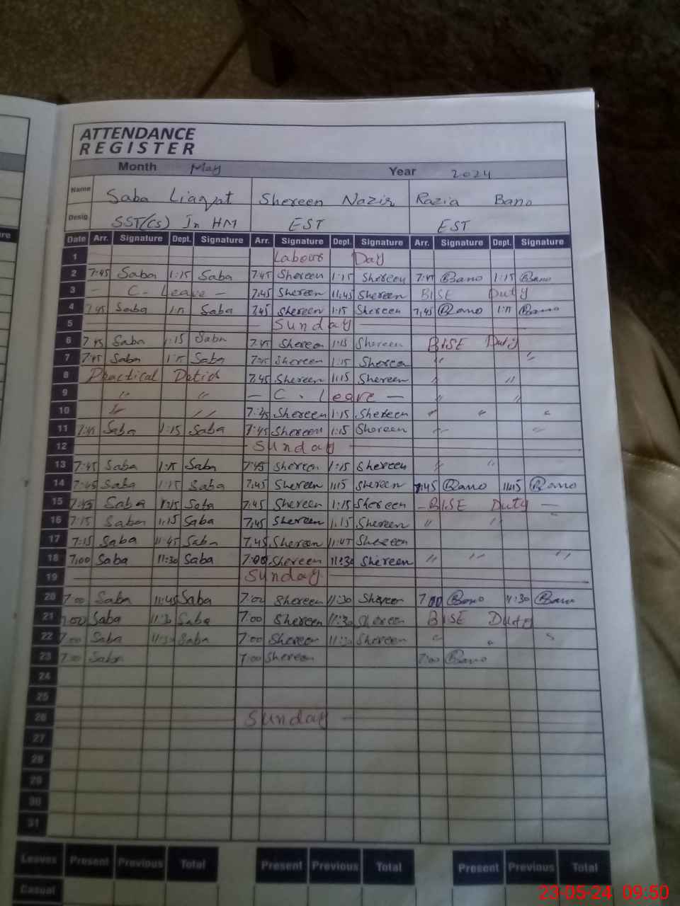 | 33**** | Kh**** Ha**** | NSIB QASID | Regular | 0 | 0 | 0 | 0 | 0 | 0 | 0 | 0 | 0 | Exam Duty |