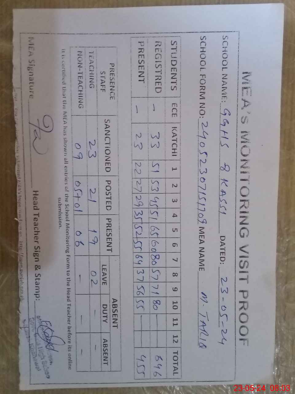| EMIS Code: 36410031 | Name of School: GGHS 8-KASSI, KOT MULCHAND, KABIRWALA | |||