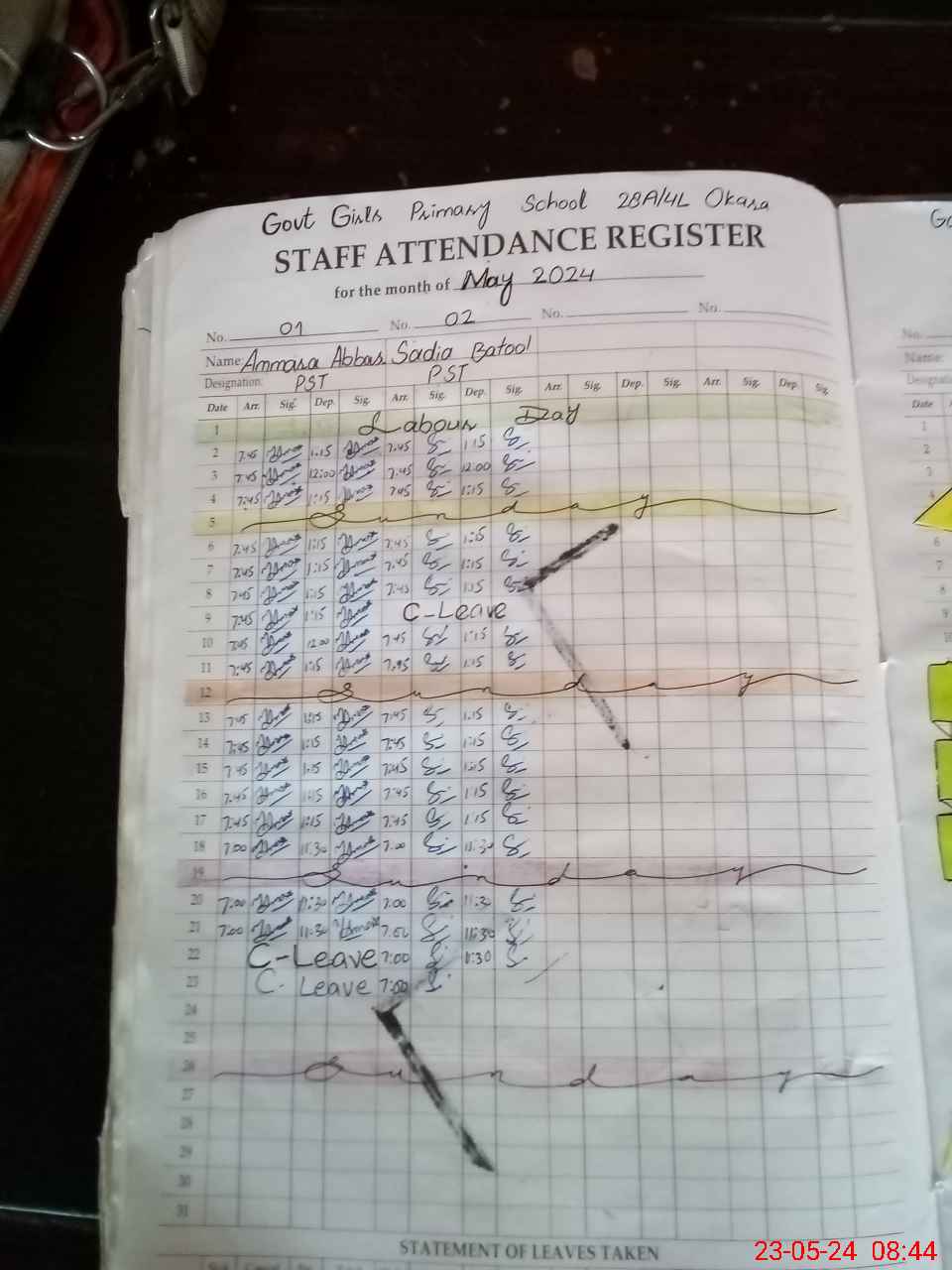 | Leave | Duty | Absent | Maternity | Medical | Ex- Pak |