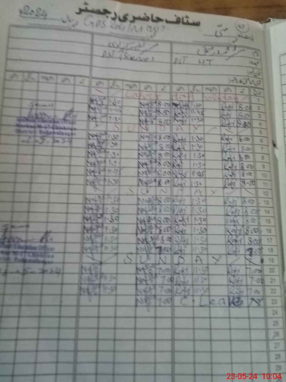 | CNIC | Full Name | Designation | R/C | Absence During Last Calender Month |