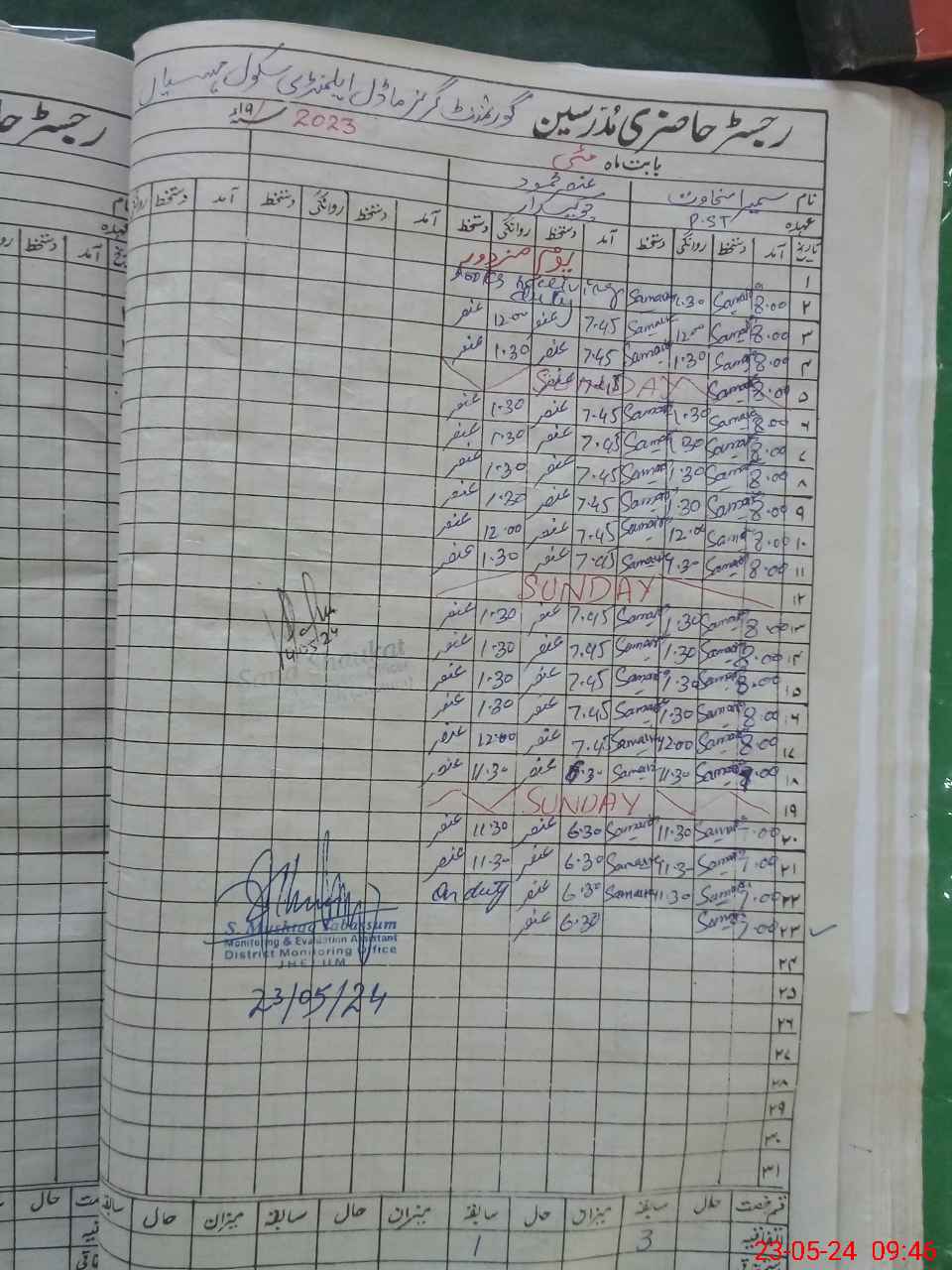 | Monitoring Date: 23-05-2024 | Start Time: 23-05-2024 09:02 AM | End Time: 23-05-2024 09:52 AM | Name of MEA: Sh**** Mu**** Ta**** | |