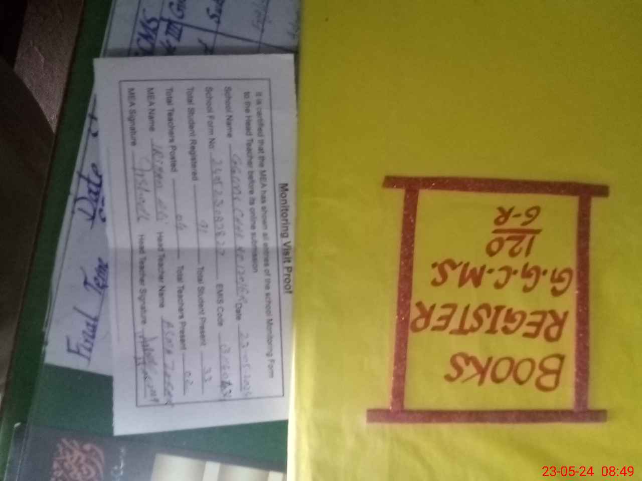 | Attendance Register | Head Teacher | MEA with School | Visit Proof |