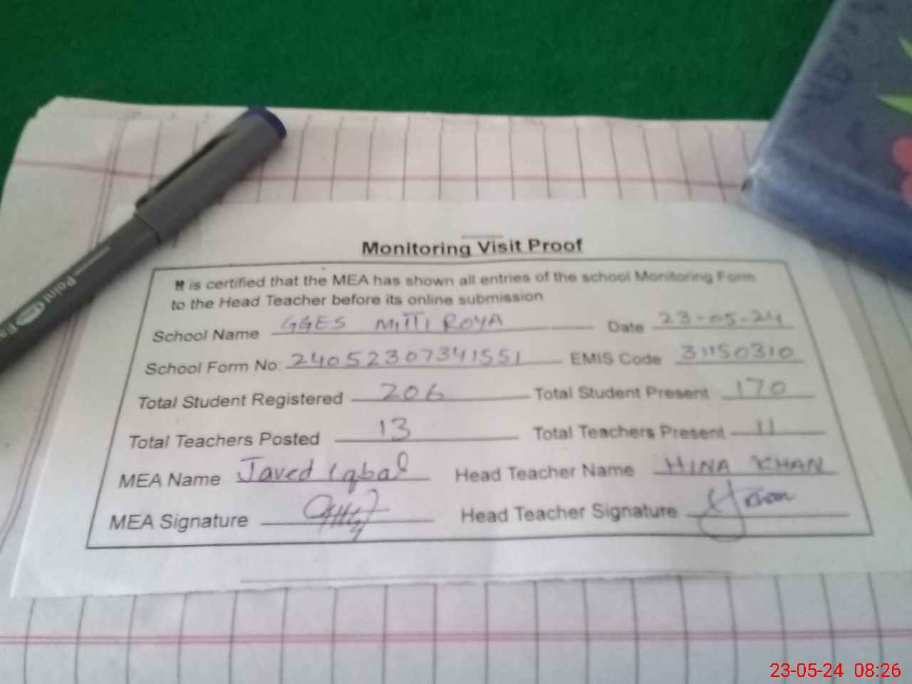 | EMIS Code: 31150310 | Name of School: GGES MATI ROYA | |||