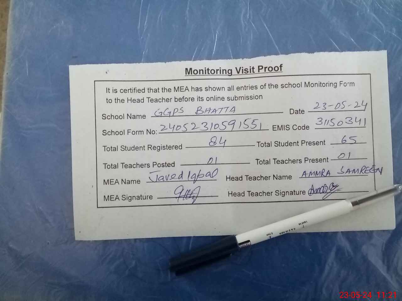 | EMIS Code: 31150341 | Name of School: GGPS BHUTTA | |||