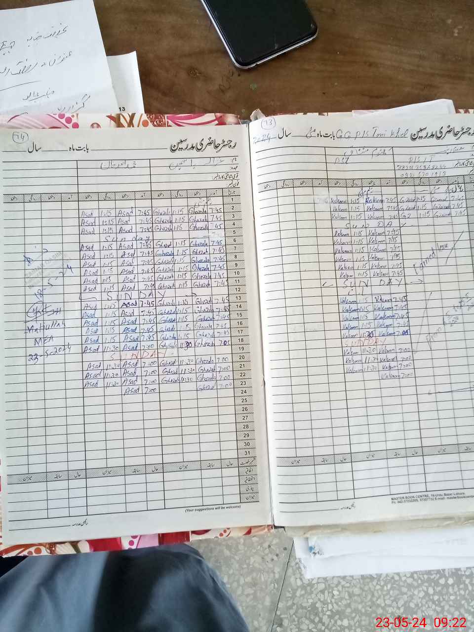 | CNIC | Full Name | Designation | R/C | Absence During Last Calender Month |