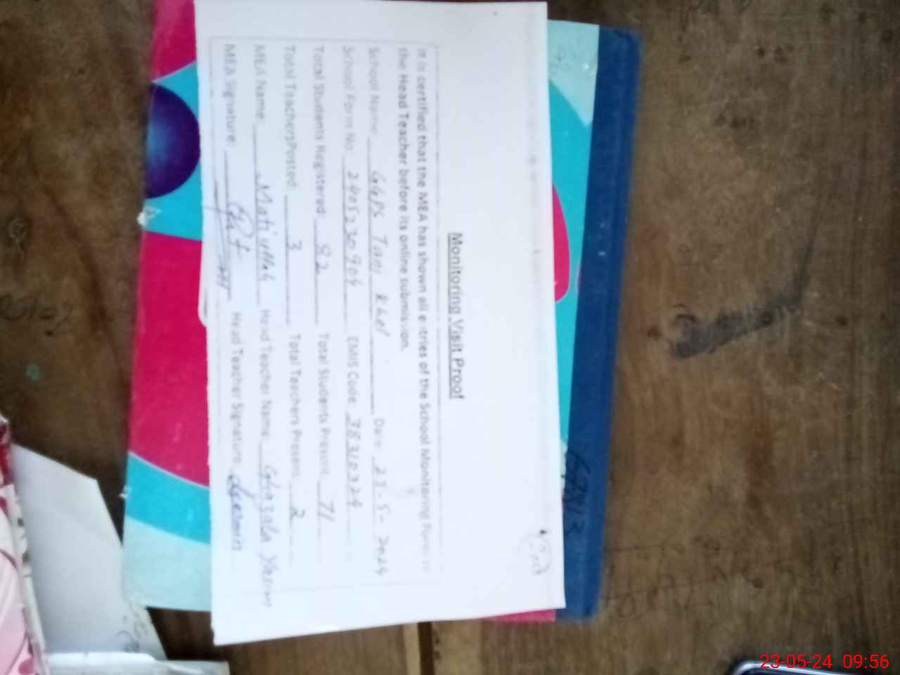 | Attendance Register | Head Teacher | MEA with School | Visit Proof |