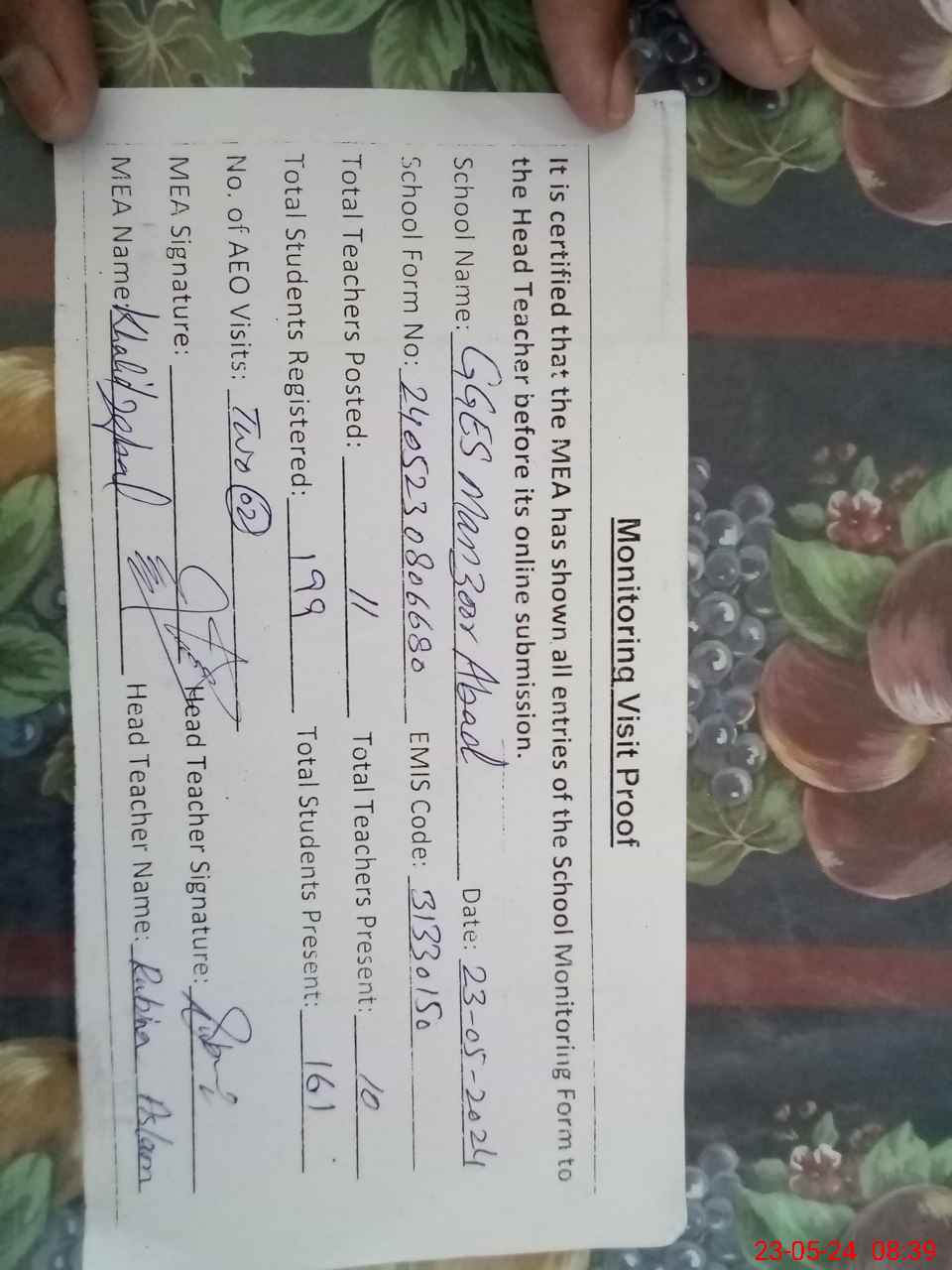 | EMIS Code: 31330150 | Name of School: GGES MANZOOR ABAD | |||
