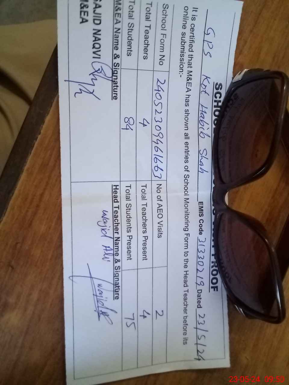| Attendance Register | Head Teacher | MEA with School | Visit Proof |