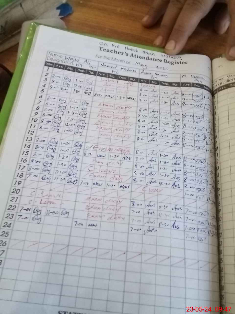 | CNIC | Full Name | Designation | R/C | Absence During Last Calender Month |
