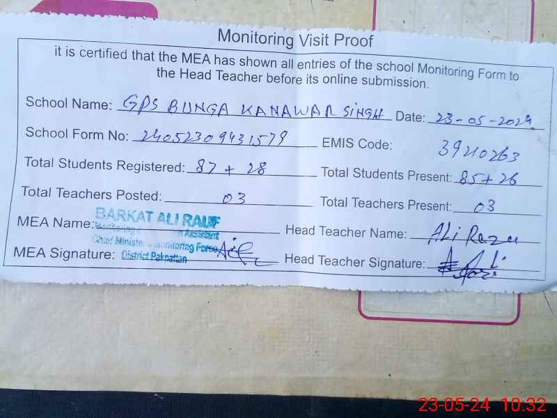 | EMIS Code: 39210263 | Name of School: GPS BUNGA KANWAR SINGH | |||