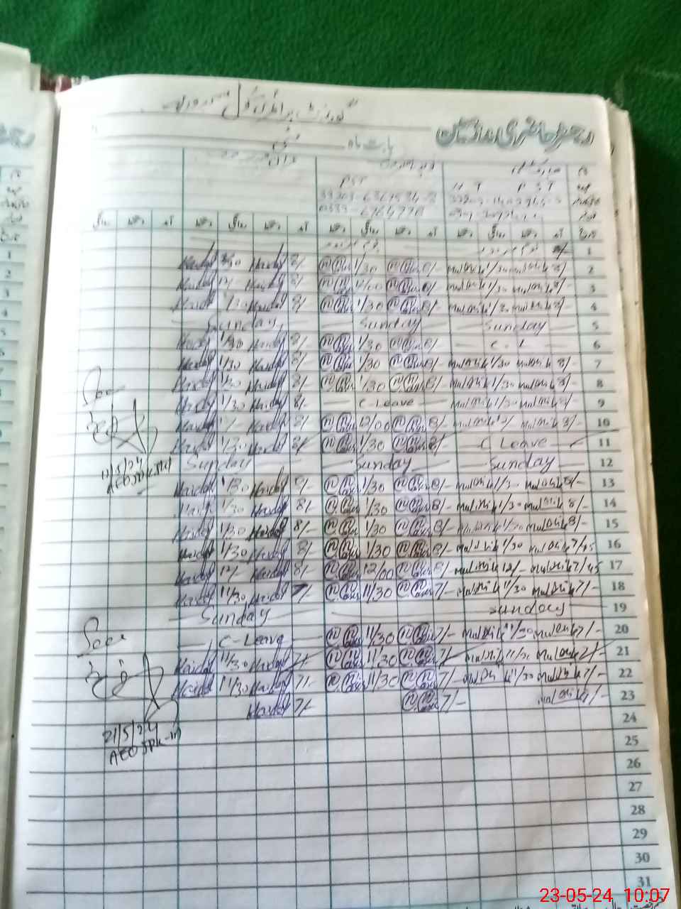 | CNIC | Full Name | Designation | R/C | Absence During Last Calender Month |