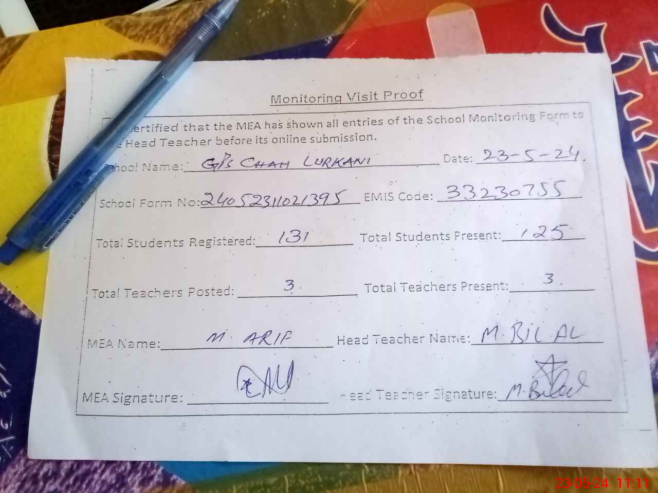 | EMIS Code: 33230755 | Name of School: GPS CHAH LURKANI | |||