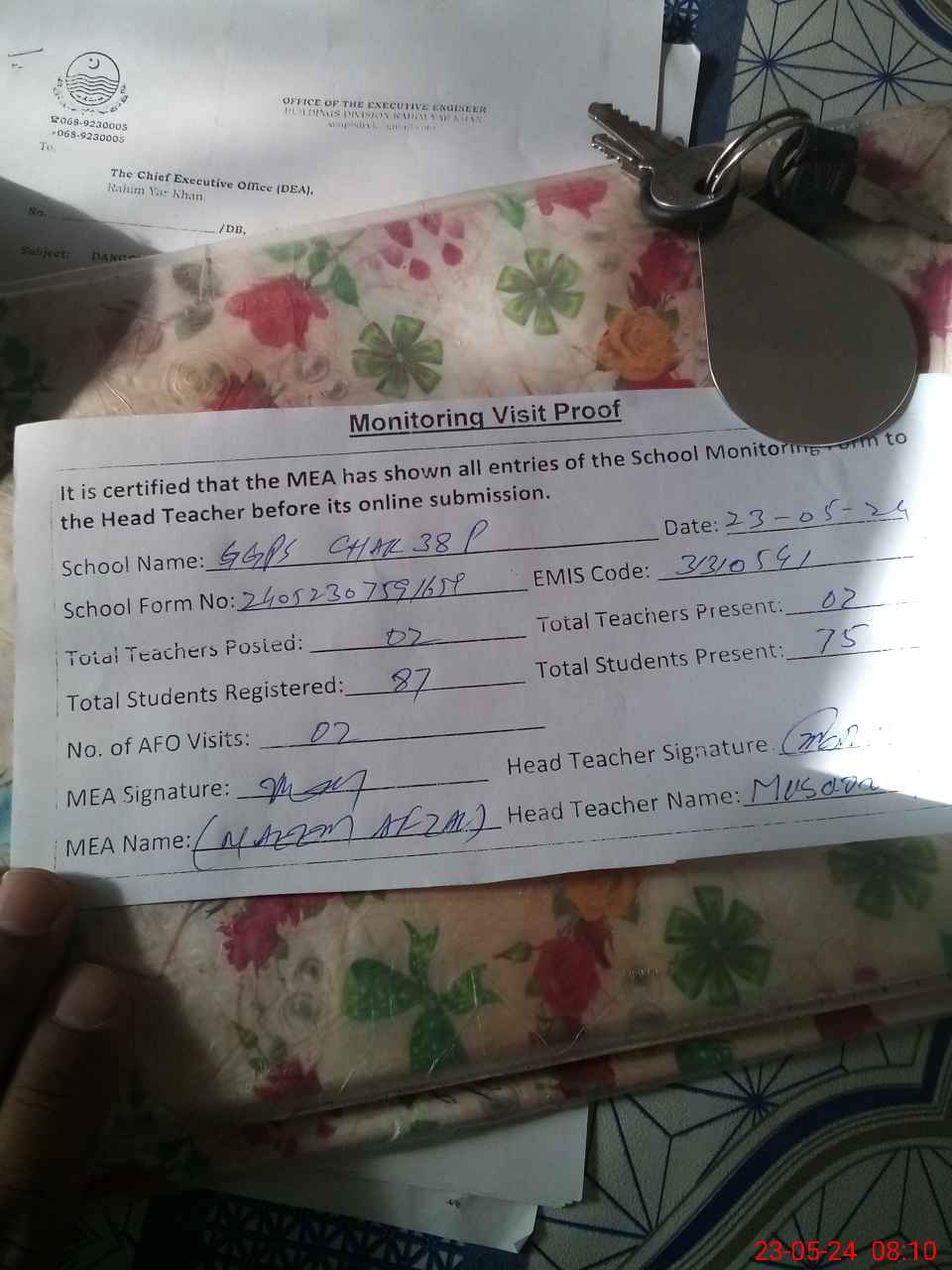| EMIS Code: 31310541 | Name of School: GGPS CHAK NO 38/P | |||