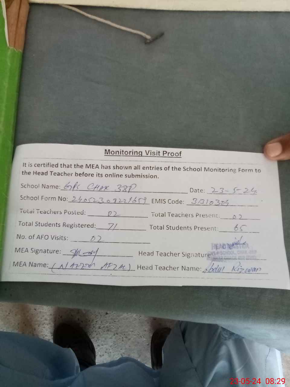 | EMIS Code: 31310304 | Name of School: GPS CHAK 38/P | |||