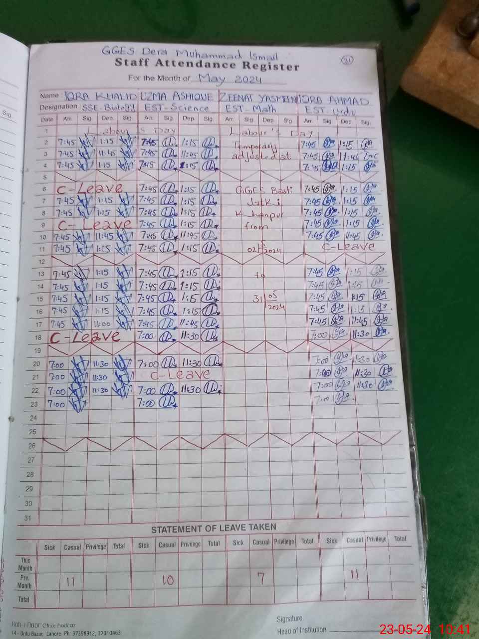 | 31**** | Ze**** Ya**** | EST | Regular | 0 | 0 | 0 | 0 | 0 | 0 | 0 | 0 | 0 | Absent (Un-Authorized) |