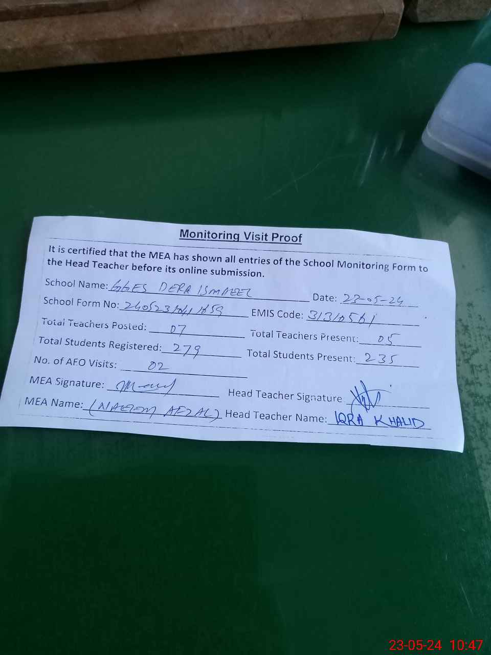 | EMIS Code: 31310561 | Name of School: GGES DERA MUHAMMAD ISMAIL | |||
