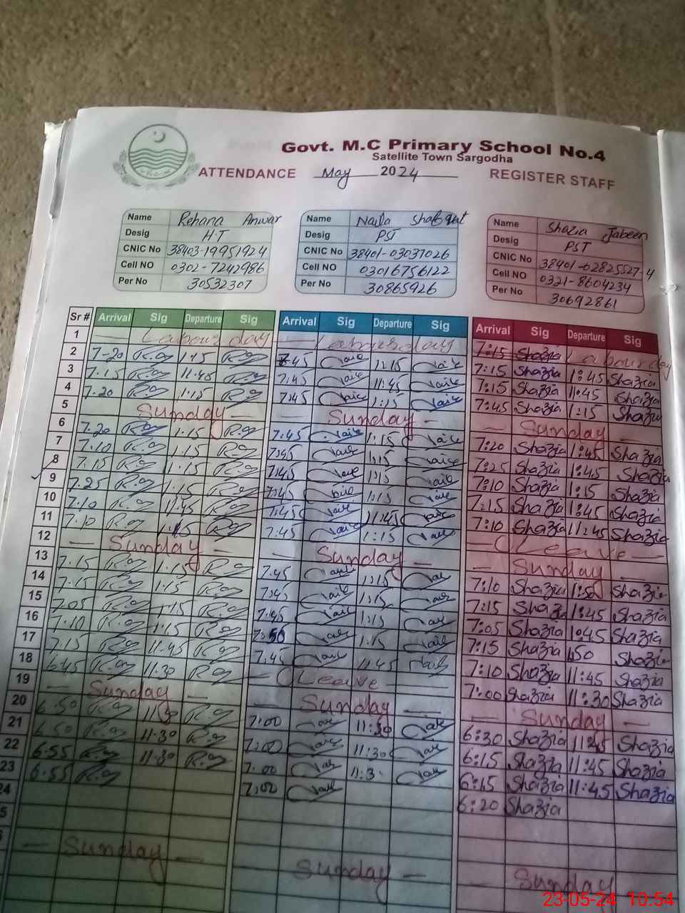 | CNIC | Full Name | Designation | R/C | Absence During Last Calender Month |