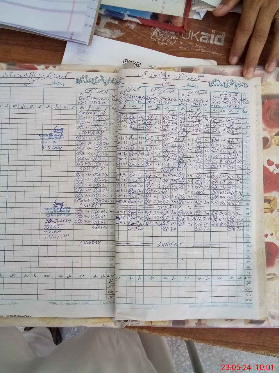 | Name: HA**** BE**** Designation: (School Headmaster's/Headmistress's) /PTC/ Phone/Cell Number: 03**** |