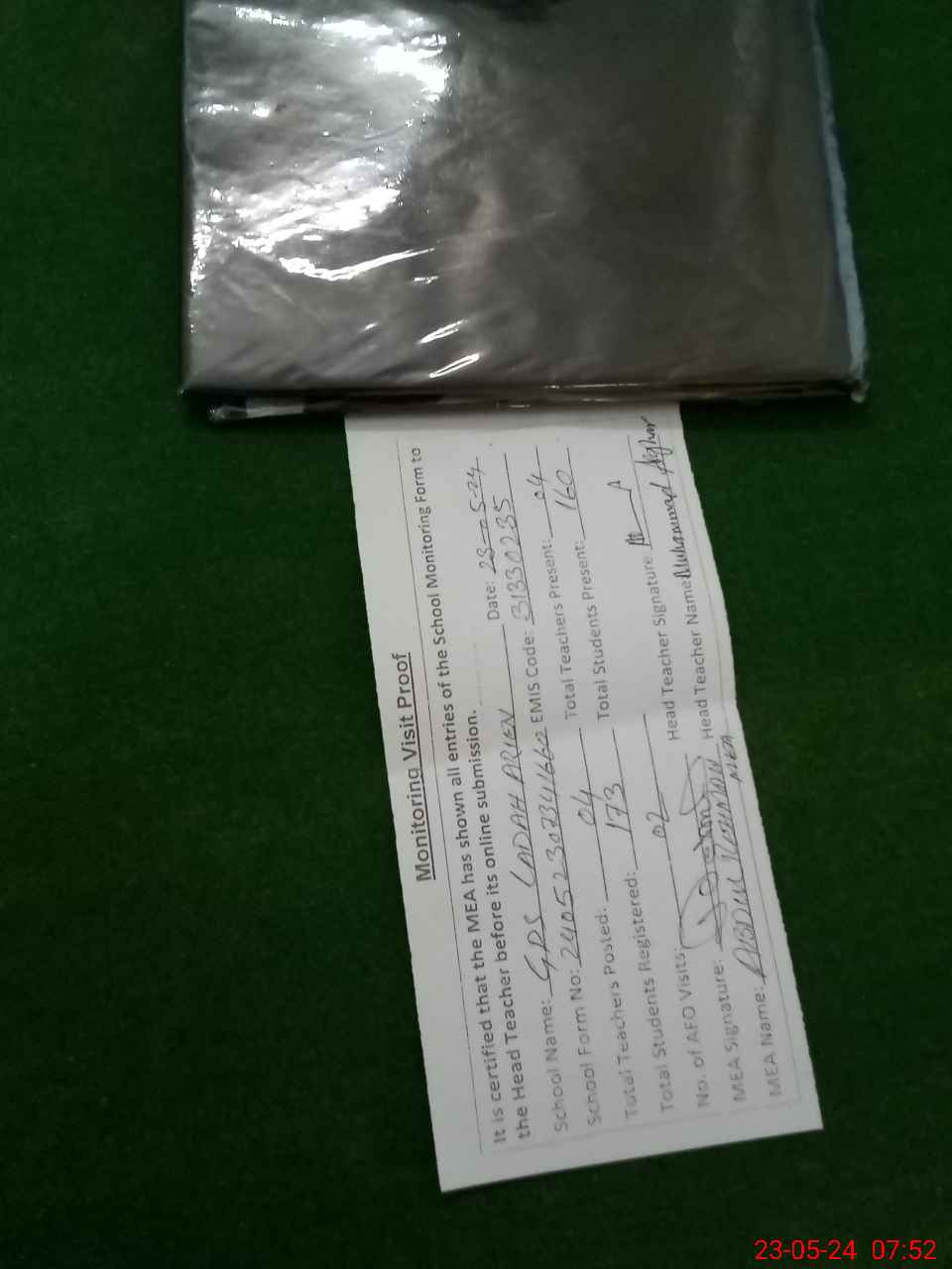 | Certified that this School was Inspected by the Undersigned MEA/DMO Today and the Information Stated Above is as Per Record. | |||||