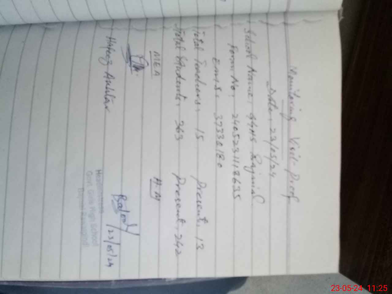| Monitoring Date: 23-05-2024 | Start Time: 23-05-2024 10:37 AM | End Time: 23-05-2024 11:28 AM | Name of MEA: Sy**** Ha**** Ak**** | |