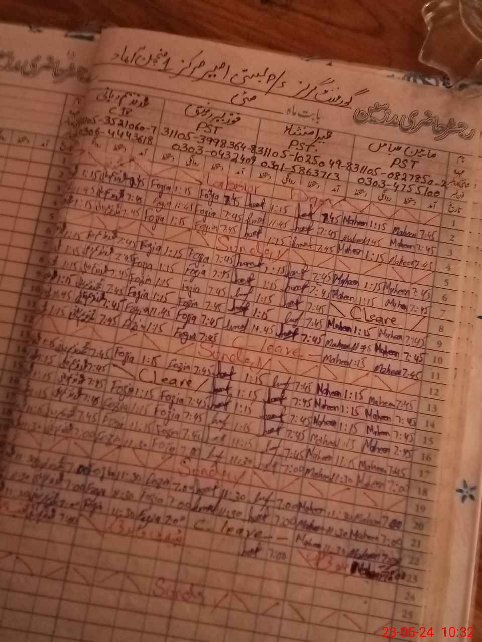 | Leave | Duty | Absent | Maternity | Medical | Ex- Pak |