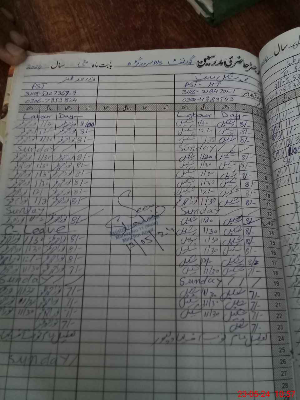 | Name: MU**** Sh**** Designation: (School Headmaster's/Headmistress's) PST Phone/Cell Number: 03**** |