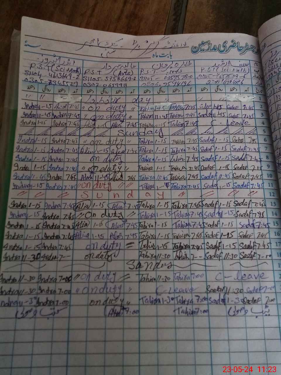 | Name: SA**** AR**** Designation: (School Headmaster's/Headmistress's) PST Phone/Cell Number: 03**** |