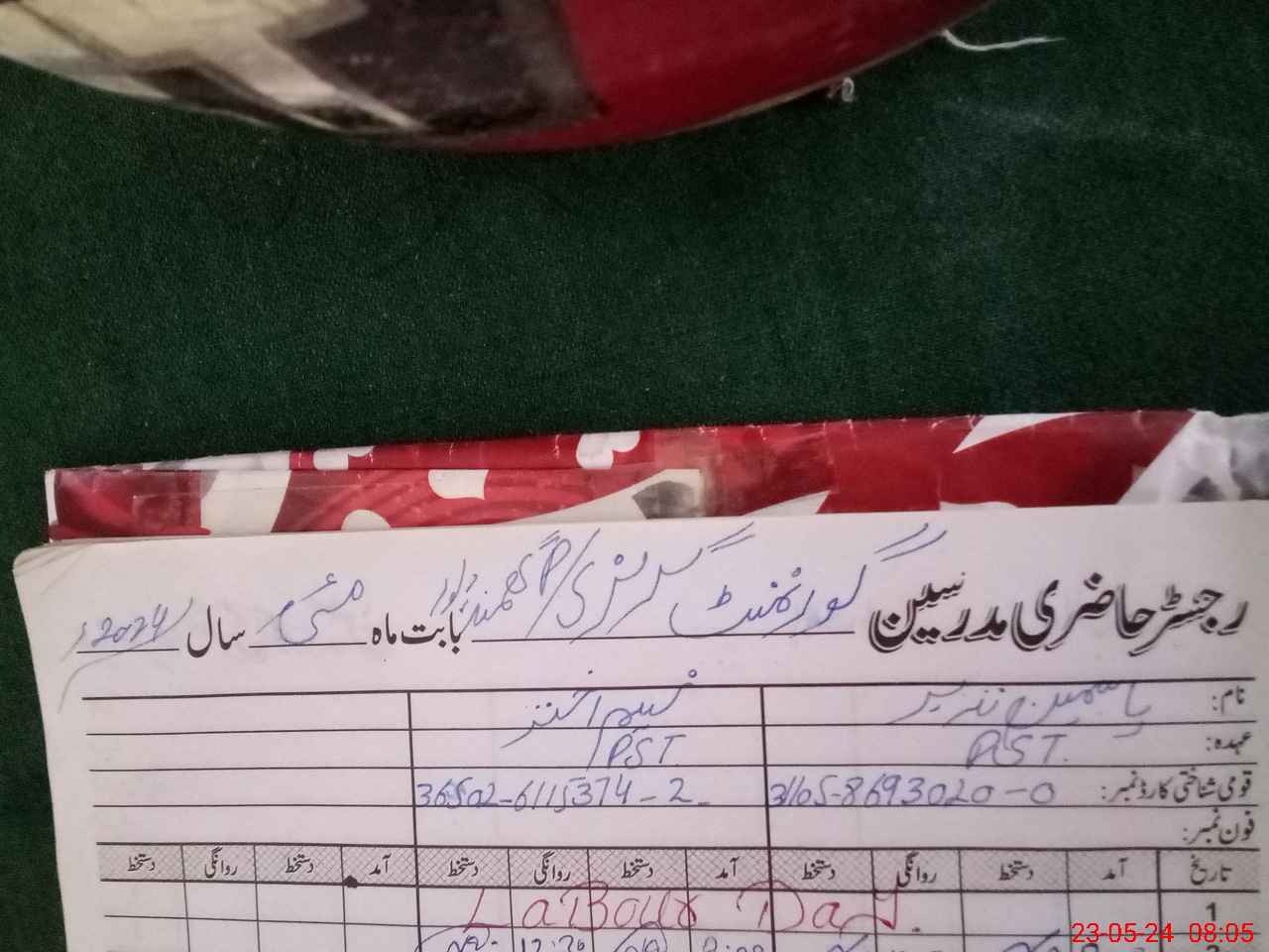 | CNIC | Full Name | Designation | R/C | Absence During Last Calender Month |