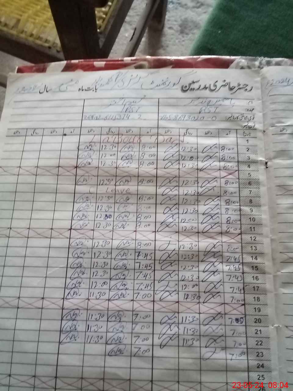 | CNIC | Full Name | Designation | R/C | Absence during last cal. month |