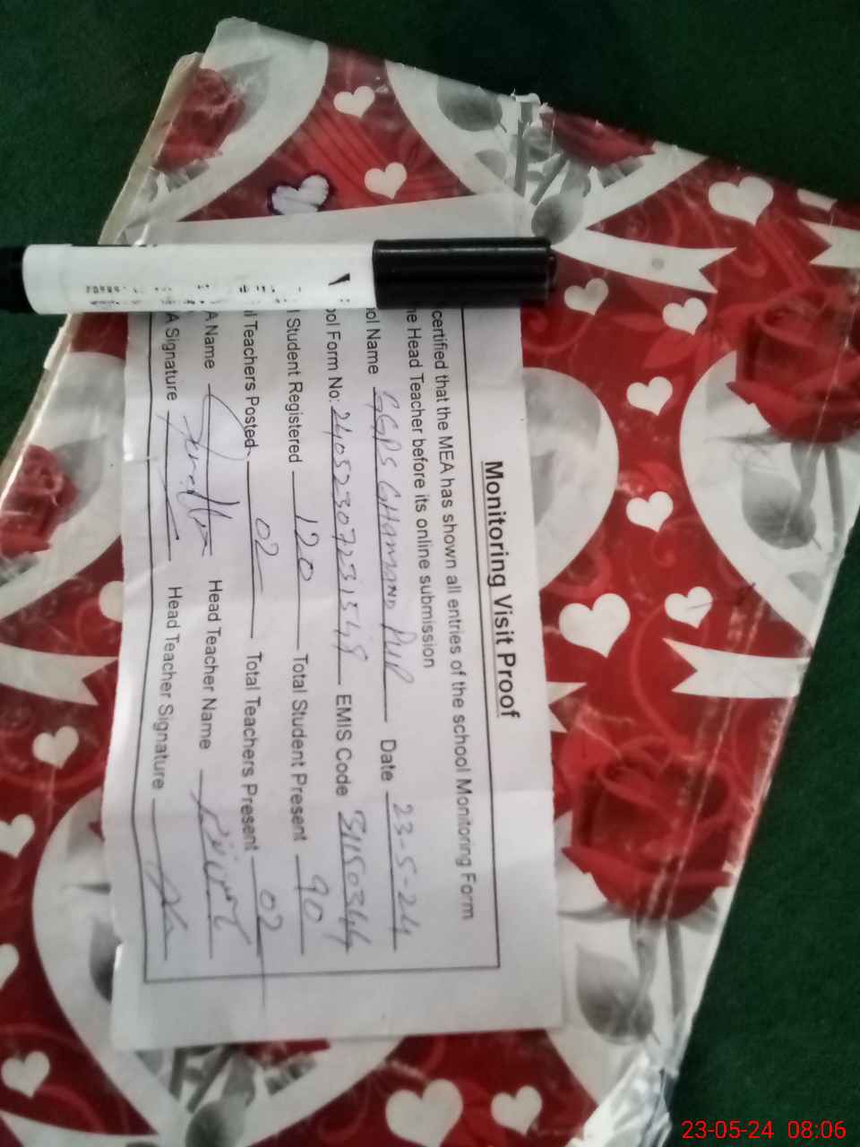 | Attendance Register | Head Teacher | MEA with School | Visit Proof |
