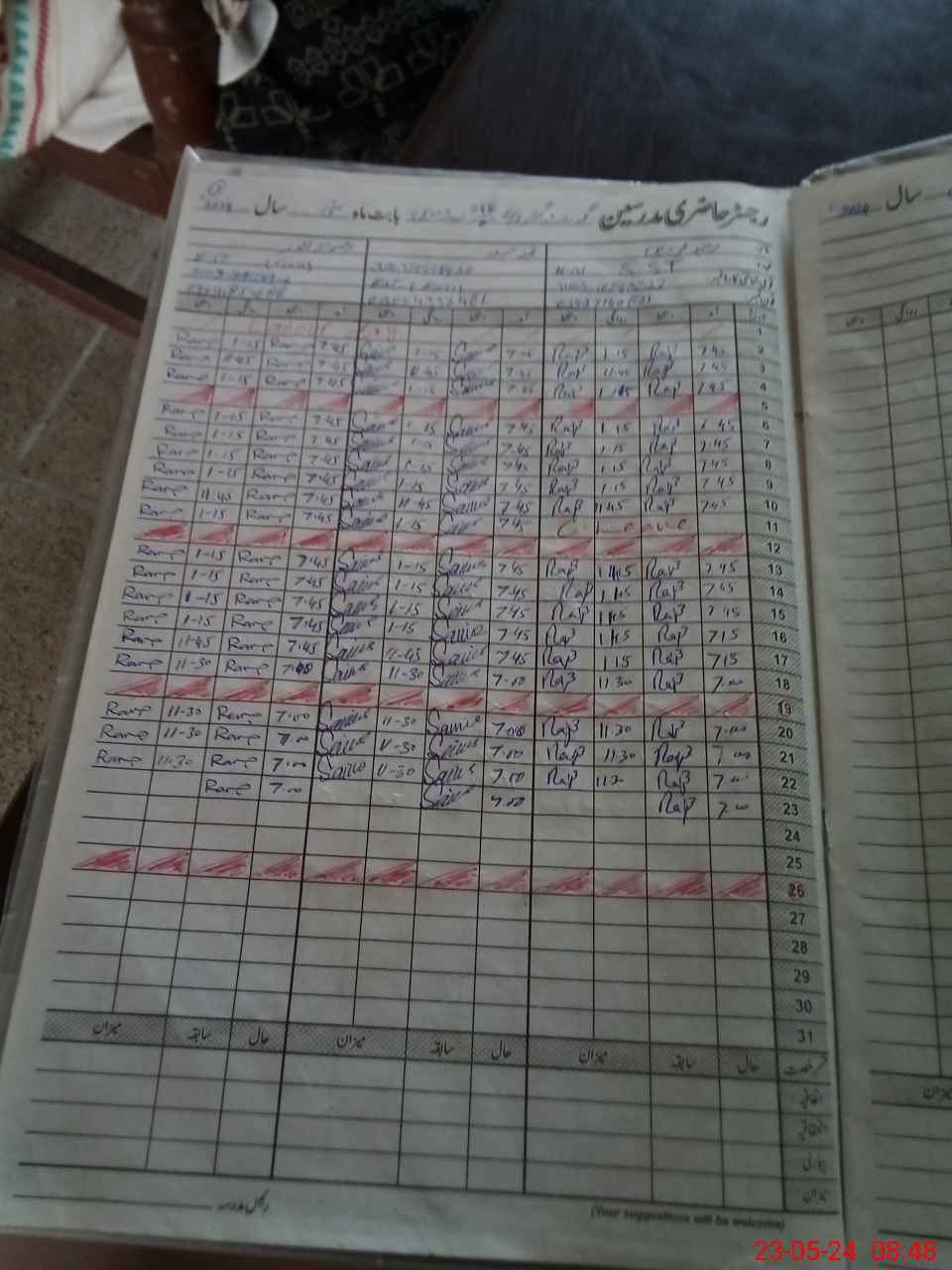 | CNIC | Full Name | Designation | R/C | Absence During Last Calender Month |