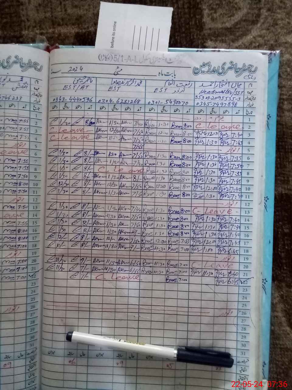 | Name: IF**** AH**** Designation: (School Headmaster's/Headmistress's) SST Phone/Cell Number: 03**** |