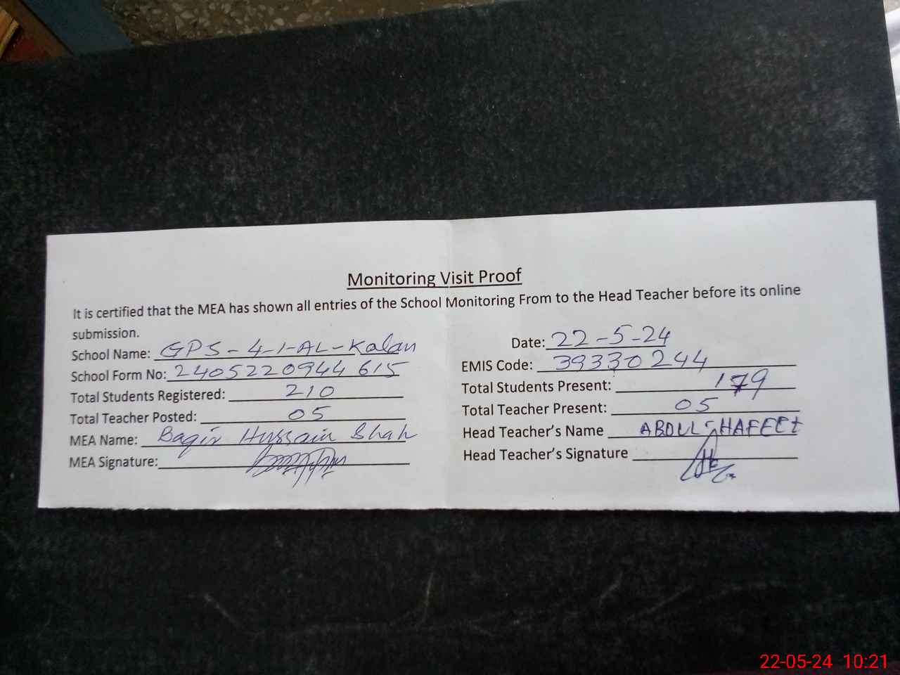 | Name: Ha**** Ab**** Ha**** Designation: (School Headmaster's/Headmistress's) PTC/JV Phone/Cell Number: 03**** |