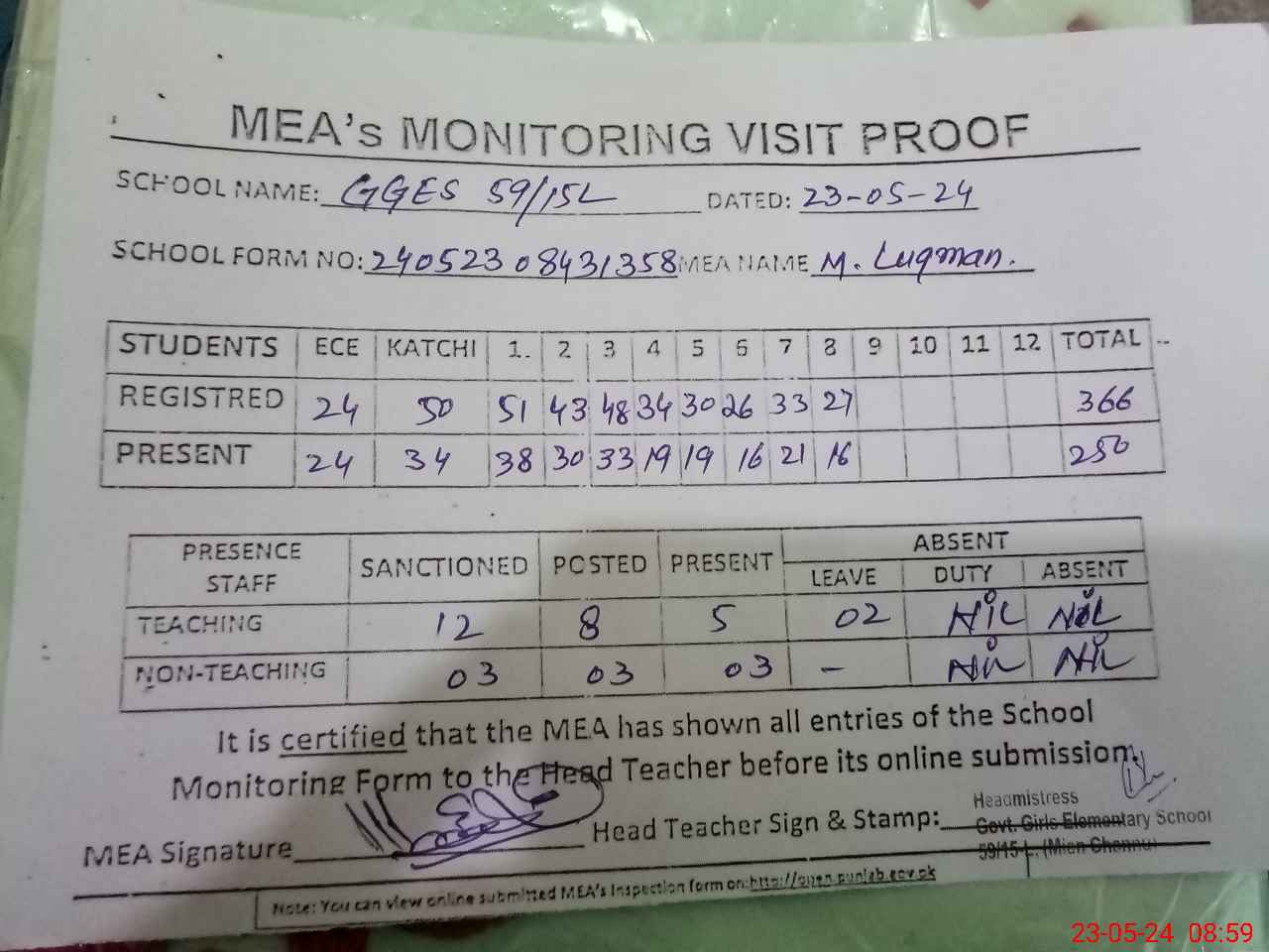 | EMIS Code: 36430087 | Name of School: GGES 59/15-L, MIAN CHANNU | |||