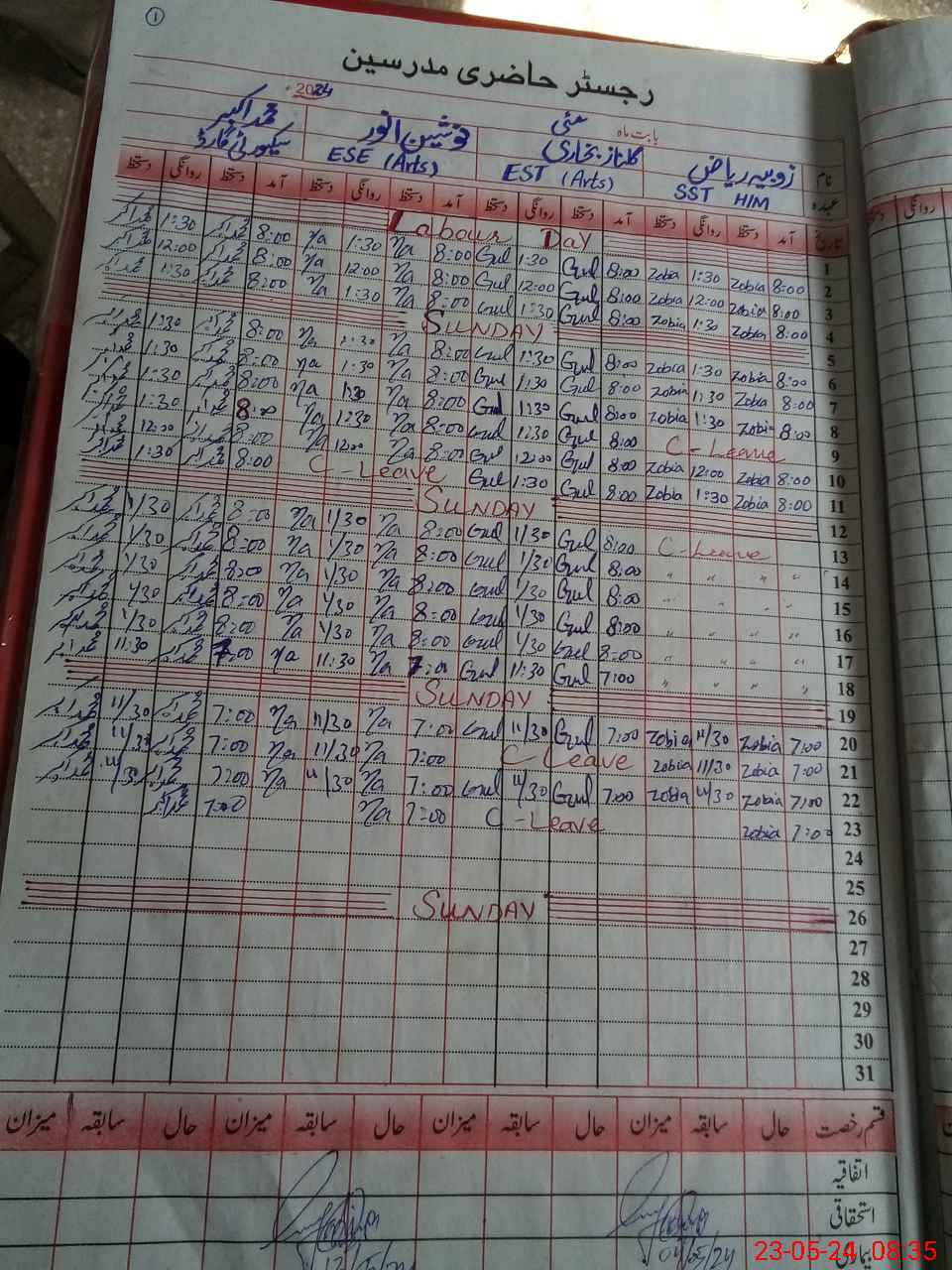 | CNIC | Full Name | Designation | R/C | Absence During Last Calender Month |