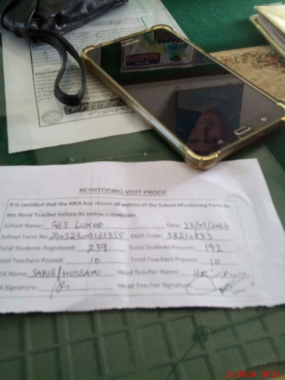| Attendance Register | Head Teacher | MEA with School | Visit Proof |