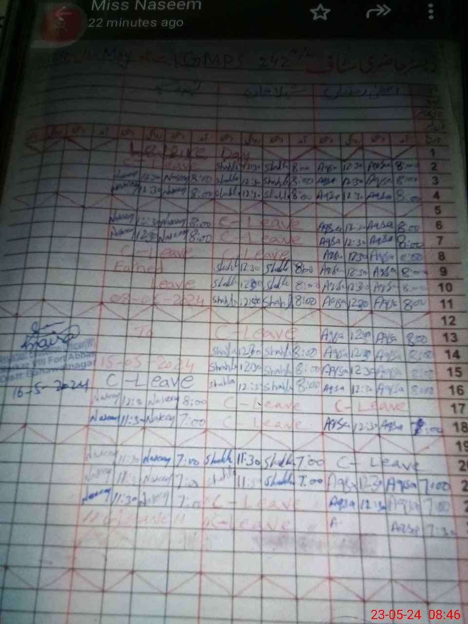 | Leave | Duty | Absent | Maternity | Medical | Ex- Pak |