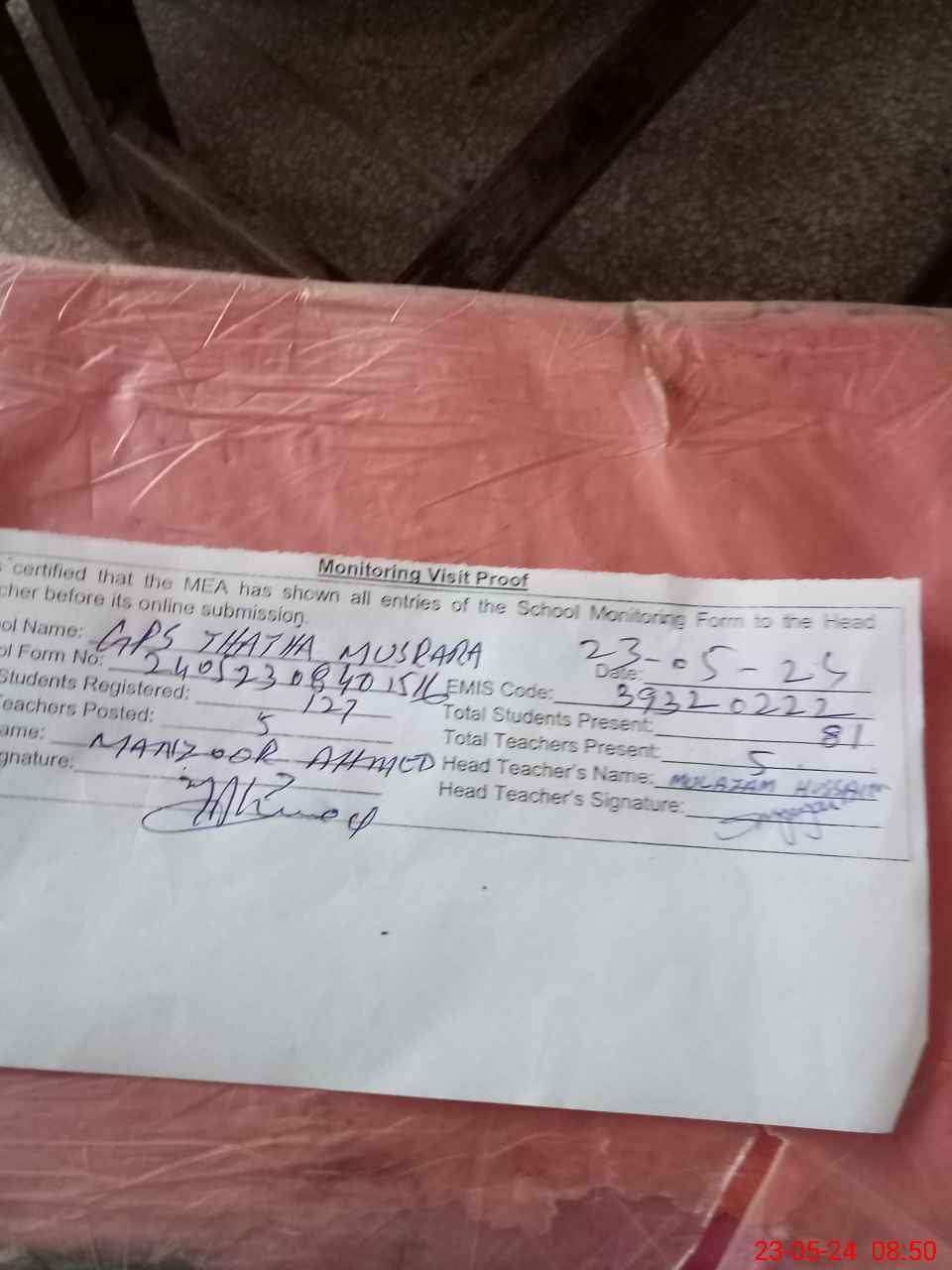 | EMIS Code: 39320222 | Name of School: GPS THATHA MUSRAIRA | |||