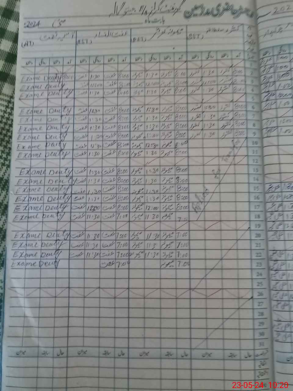 | 35**** | Aa**** Ne**** | 1 | 0 | 6 | 0 | 0 | 0 | 0 | 0 | 0 | 0 | Exam Duty | |