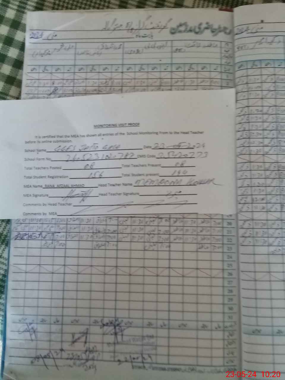 | Attendance Register | Head Teacher | MEA with School | Visit Proof |