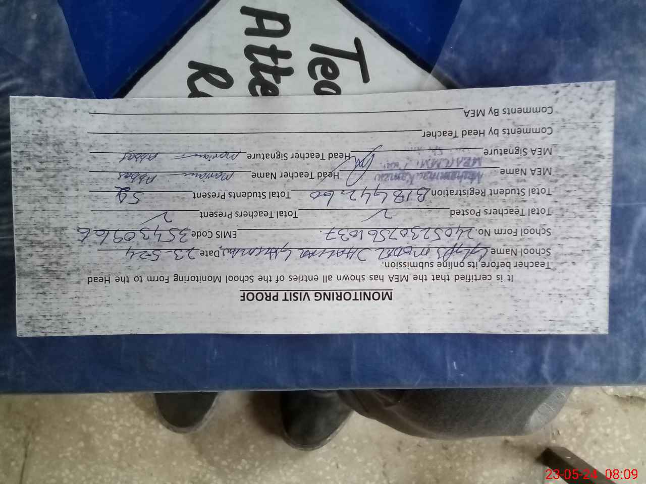 | Attendance Register | Head Teacher | MEA with School | Visit Proof |