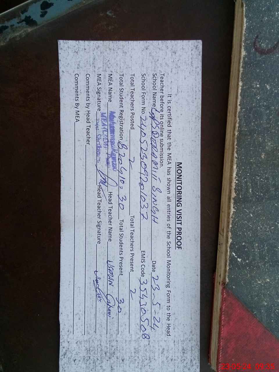 | Certified that this School was Inspected by the Undersigned MEA/DMO Today and the Information Stated Above is as Per Record. | |||||