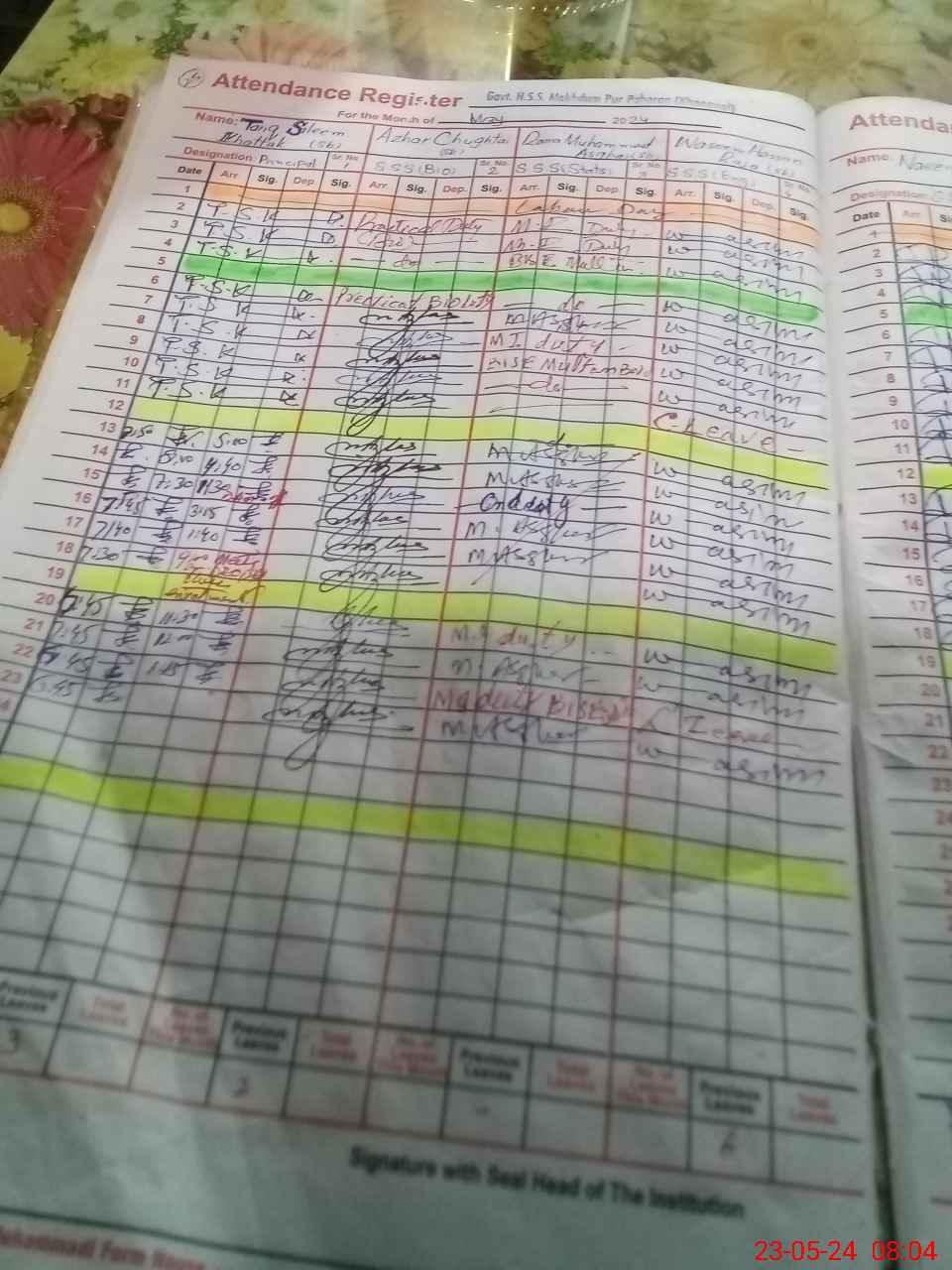 | CNIC | Full Name | Designation | R/C | Absence During Last Calender Month |