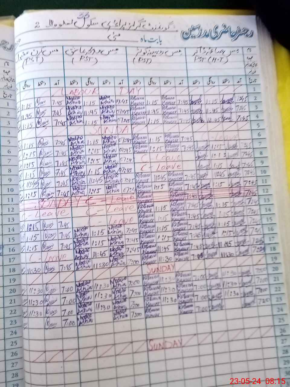 | Leave | Duty | Absent | Maternity | Medical | Ex- Pak |